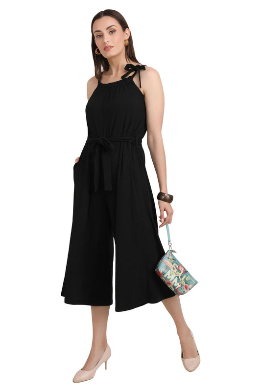Onxy Black Pin Stripe Wide Leg Jumpsuit