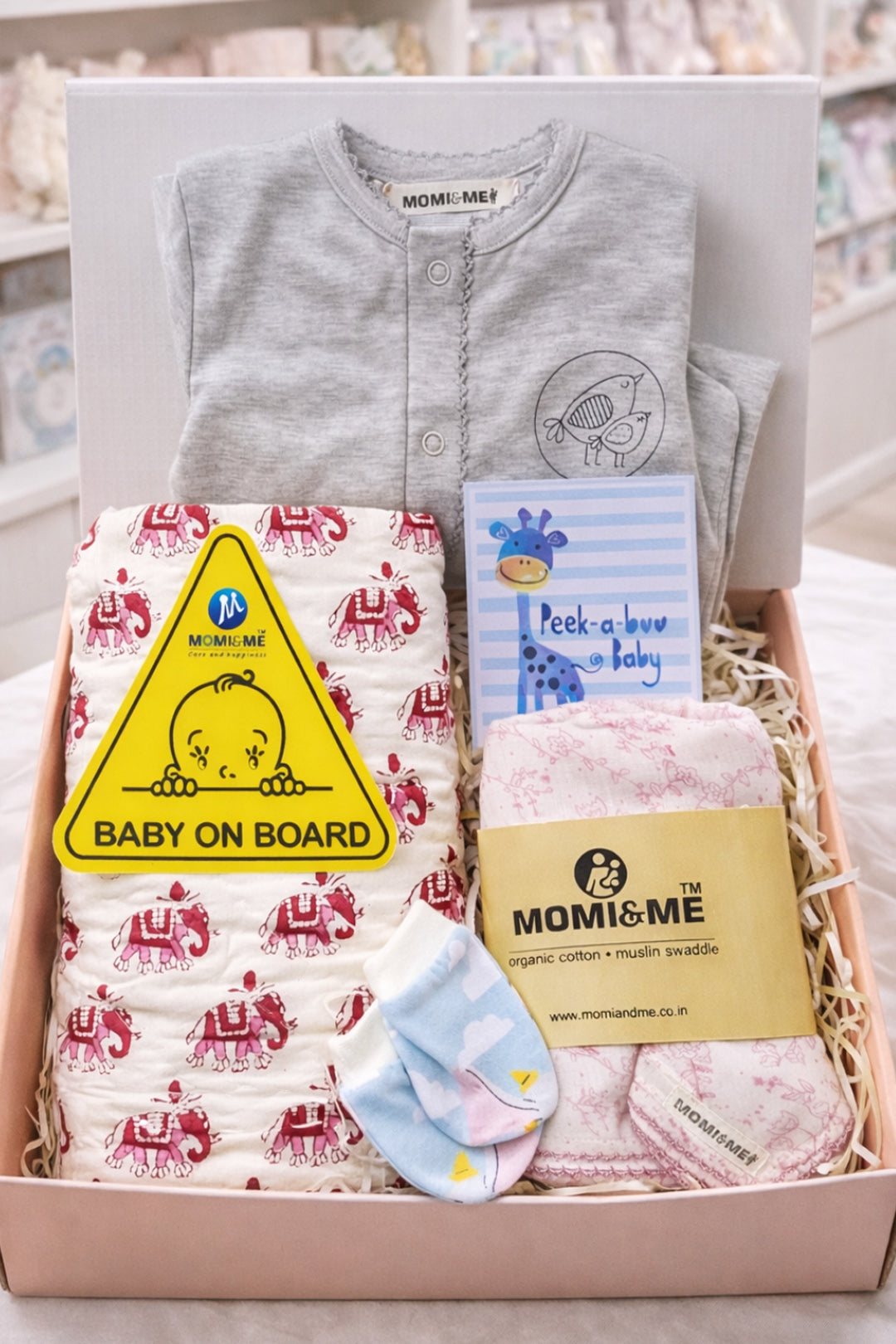 A PERFECT CONGRATULATORY GIFT FOR NEW PARENTS! | The Momiandme NewBorn Gift Box | Gift Hamper| Unisex Clothing Set | Infants Essentials | Baby Shower | 5 piece set | For BabyBoy and BabyGirl